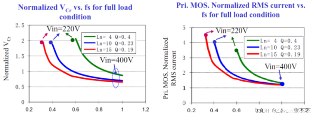 越大,谐振腔电容所受的电压应力也会更小,晶体管的有效值电流(导通损耗)也会更小,因此往往希望