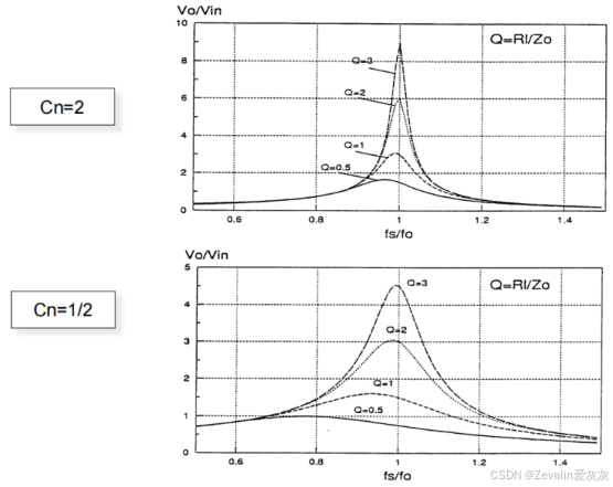 越大,Q值将会越小,那么开关频率将会处在更窄的频带中,且经过数学分析也能看出,