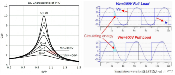 和Q值的增益曲线,增益曲线的最小值需大于输入电压为最小值时谐振腔所需的电压增益,否则无法满足需求。
