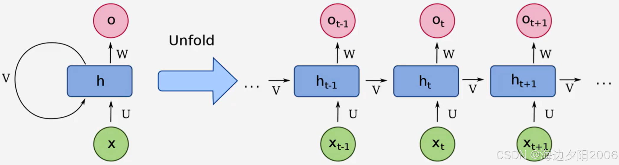 这个简单的公式体现了RNN的核心思想:当前的隐藏状态 由上一时刻的隐藏状态