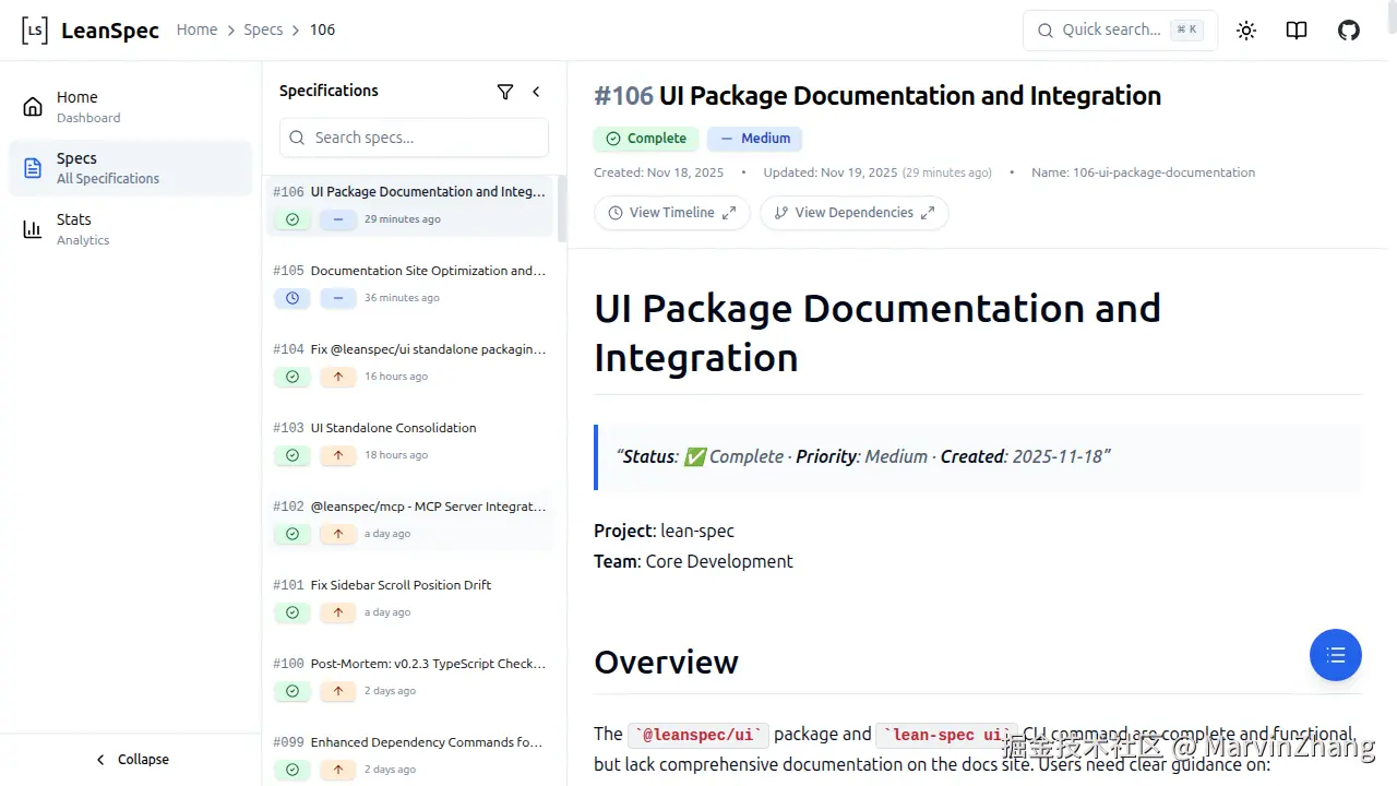 这个项目最有意思的地方在于:初版发布后,LeanSpec 完全使用 LeanSpec 自身来开发。