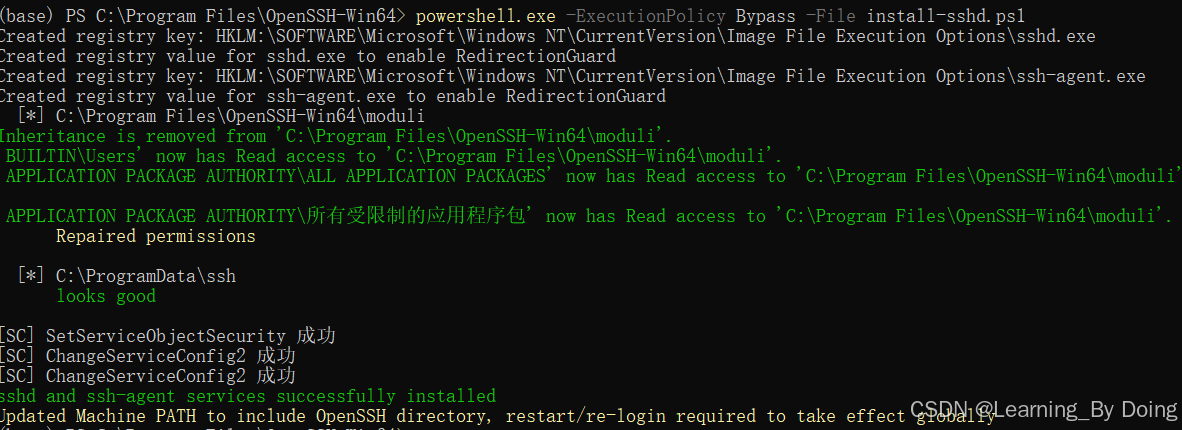 (base) PS C:\Program Files\OpenSSH-Win64> Start-Service sshd