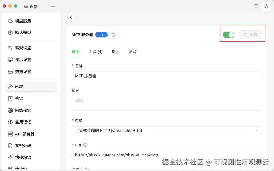 定义 URL:https://obsy-ai.guance.com/obsy_ai_mcp/mcp