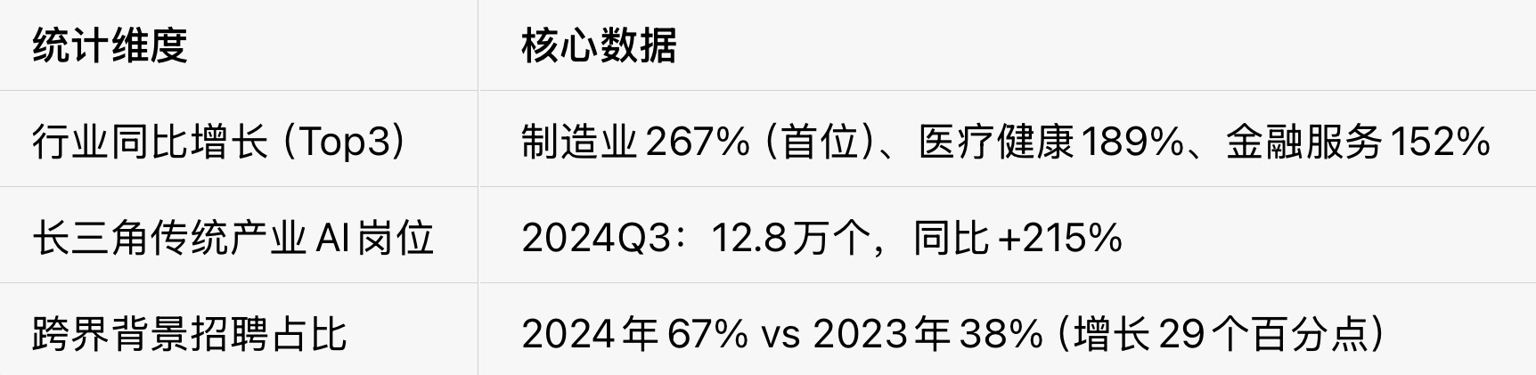 长三角地区数据显示,传统产业升级催生的AI相关岗位,在2024年第三季度达到12.8万个,较去年同期增长215%。