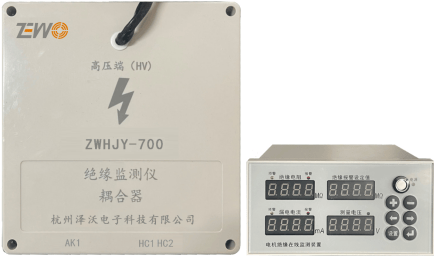 技术原理:ZWHJY-700高压绝缘监测仪采用直流高压注入法对电缆或电机绕组等进行绝缘测量,测试电压为DC2500v,仪器与电路接触器或断路器辅助触点联锁控制,实现电机回路通电时绝缘监测仪退出监测与电网分离,线路断电时绝缘监测仪自动开始对线路进行绝缘监测。