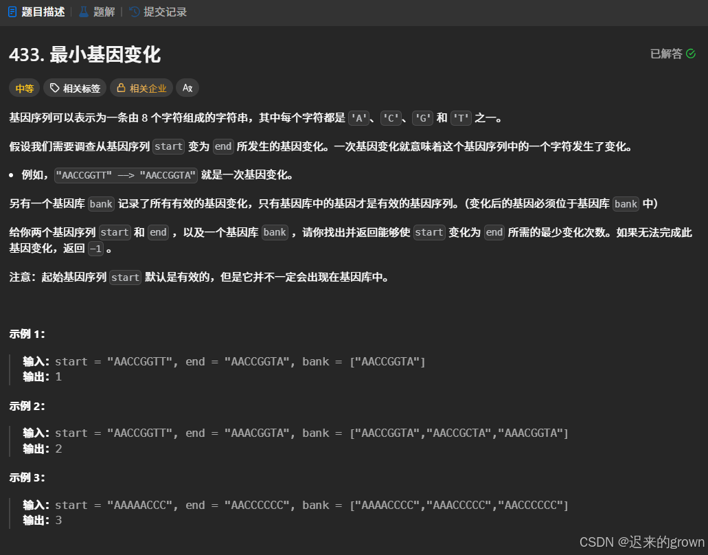 这道题,给定起始字符串和结果字符串,和基因库bank。