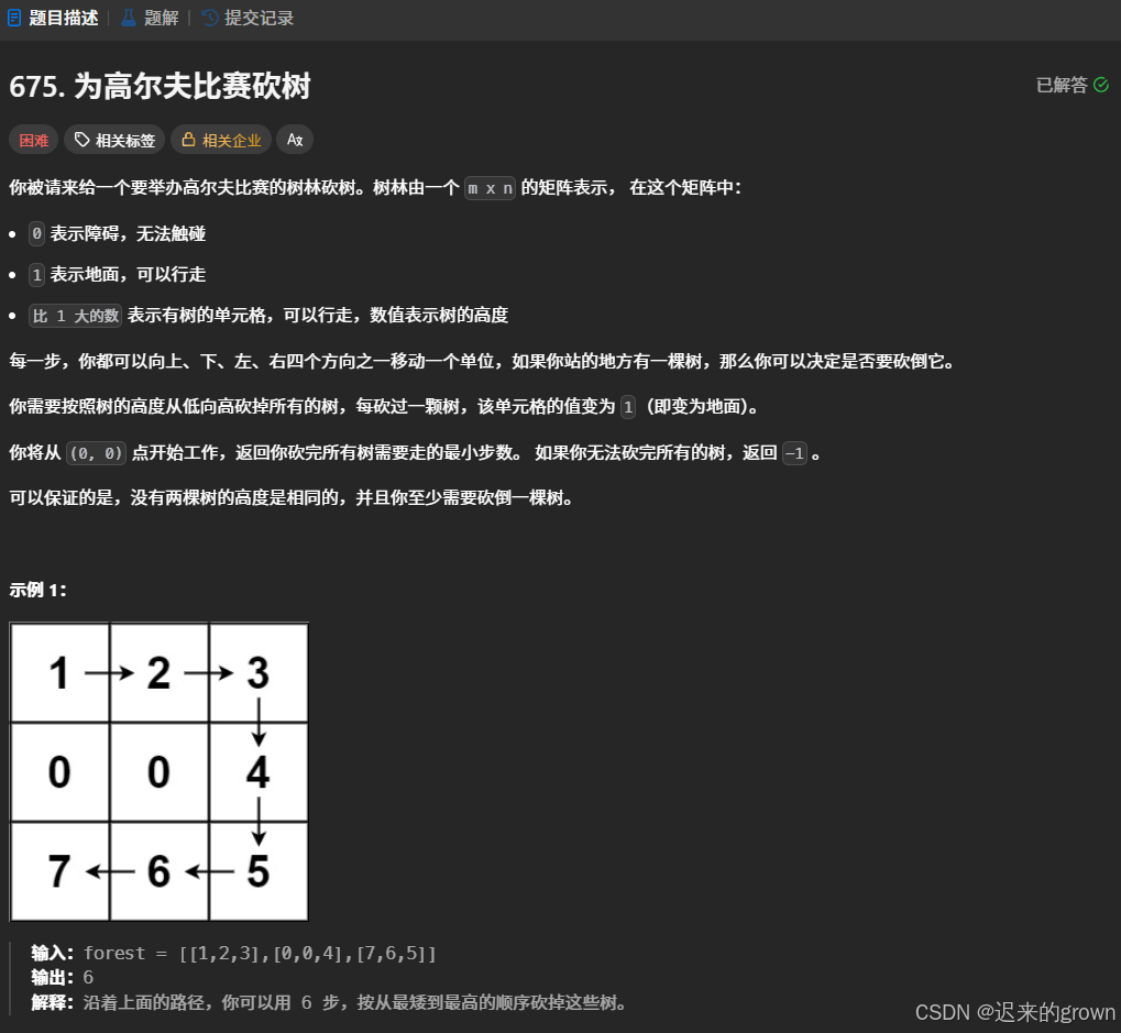 题目要求:我们必须按照树的高度,从低到高砍掉所有的树。