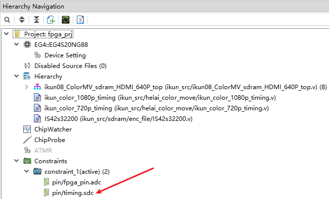 有别于友商提供的代码,我们提供给鸽鸽的每一套工程,无论FPGA资源消耗大小,同意做了时序约束,在保证工程时序收敛的同时,重在使鸽鸽学会时序约束设计方法,不要一股脑的写代码,时序更为重要,工程里的时序约束文件位置如下,可双击打开: