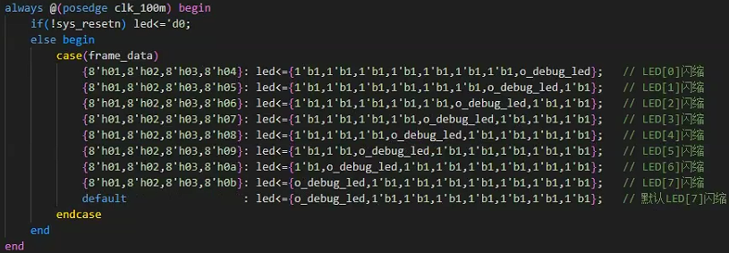 8、FPGA根据4字节的有效控制指令控制8颗LED状态