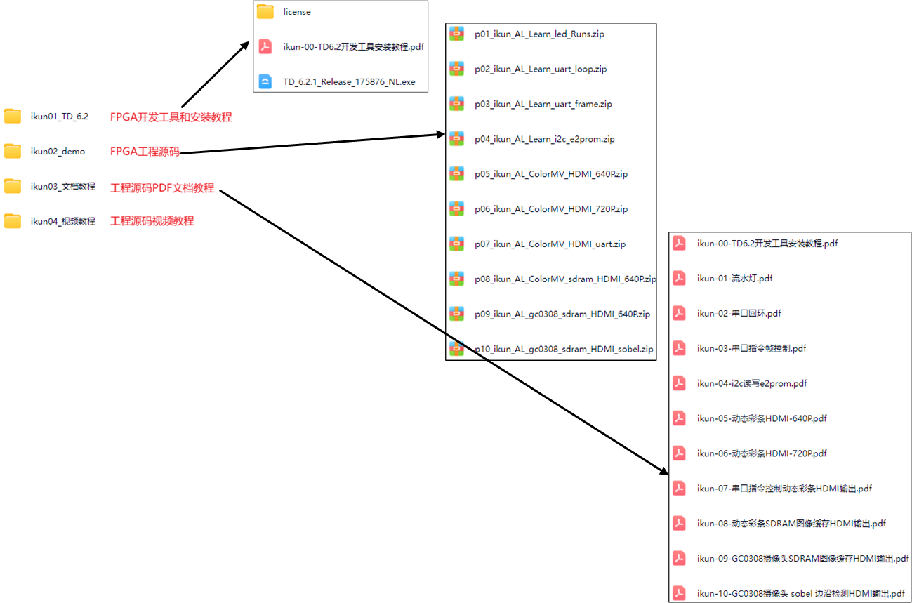 2、下载我提供的10套工程源码和文档教程,认真研读代码,不懂的先自行网上搜索或问AI解决,千万不要一上来就看视频教程,不然就废了,看视频是学不会FPGA的