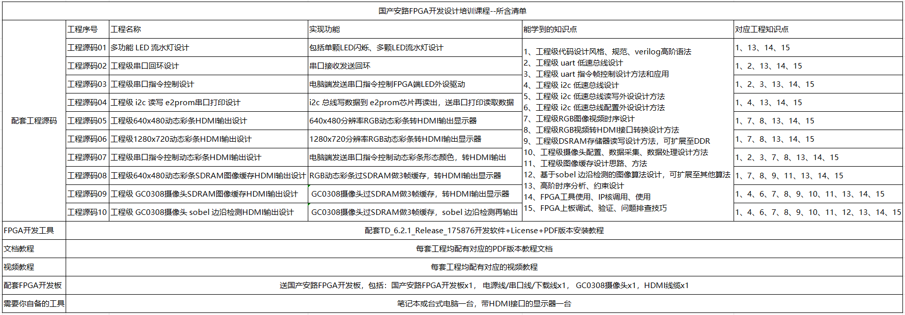 - FPGA开发设计培训课程清单详解