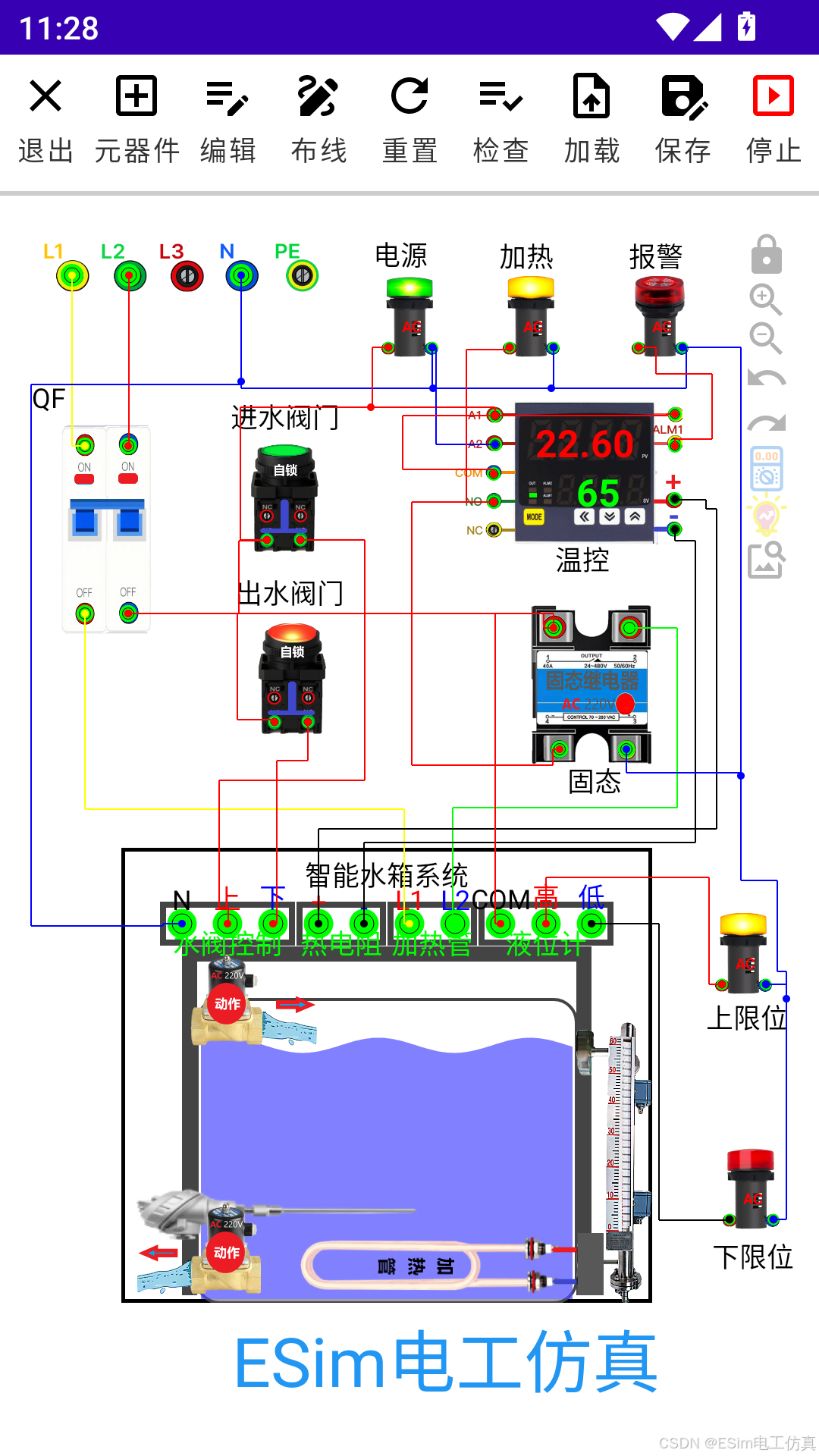本文将以一个典型的工业级热水供应系统项目为例,借助 ESim电工仿真软件(安卓版),完整呈现一个工控项目的"规划---设计---实施---调试---验收"全过程。通过本次实训,您将不仅掌握项目实施的方法论,更能在零风险环境中积累宝贵的"实战"经验,真正实现从"会知识"到"能做事"的跨越。