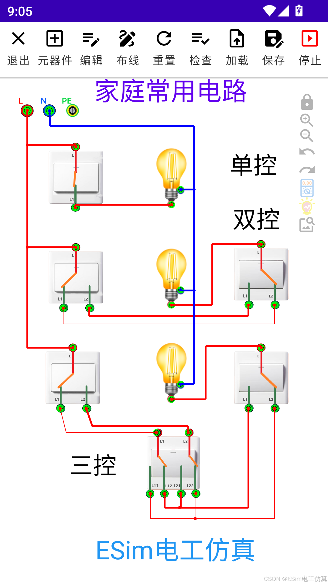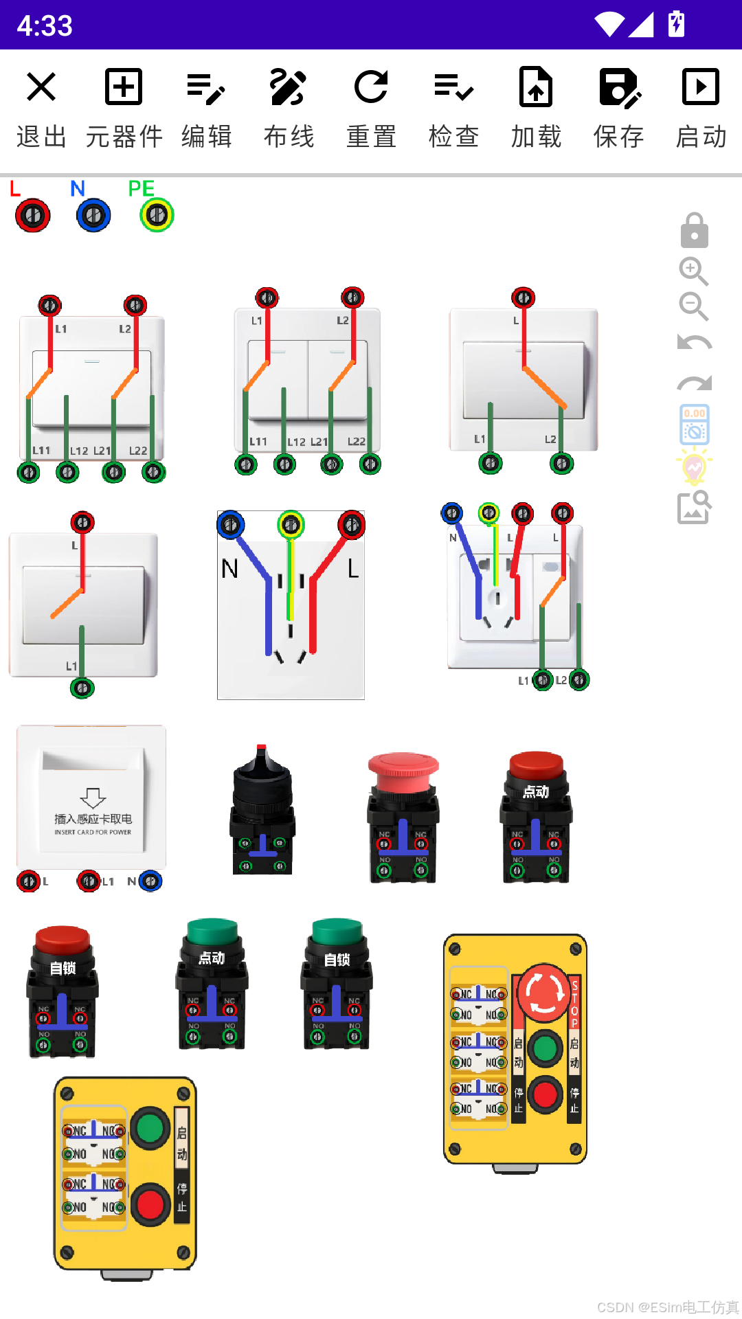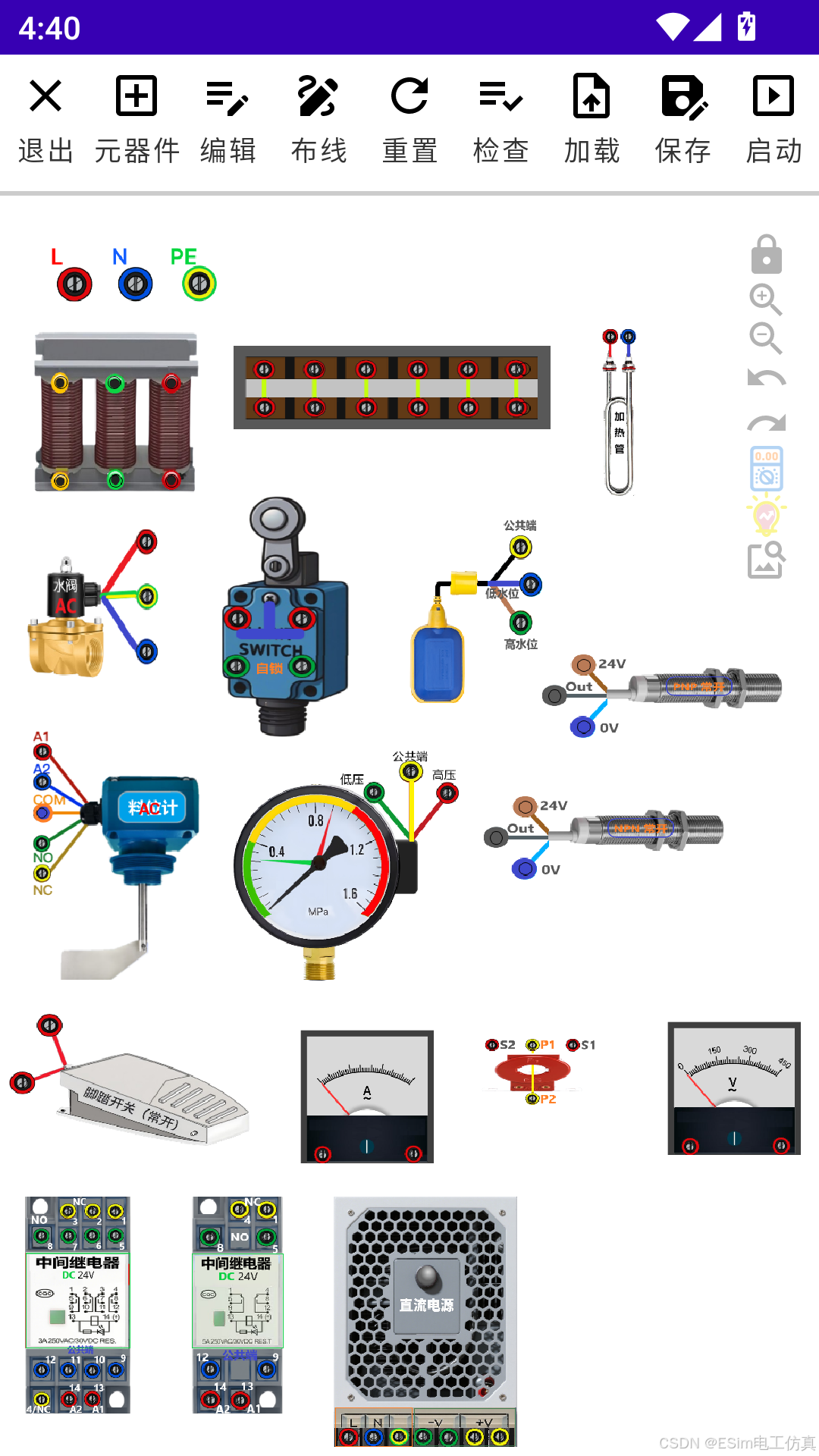 此款电工仿真是一款免费的手机电工仿真软件,它的控件9成都是免费使用的,下面详细介绍一下它的主要控件。