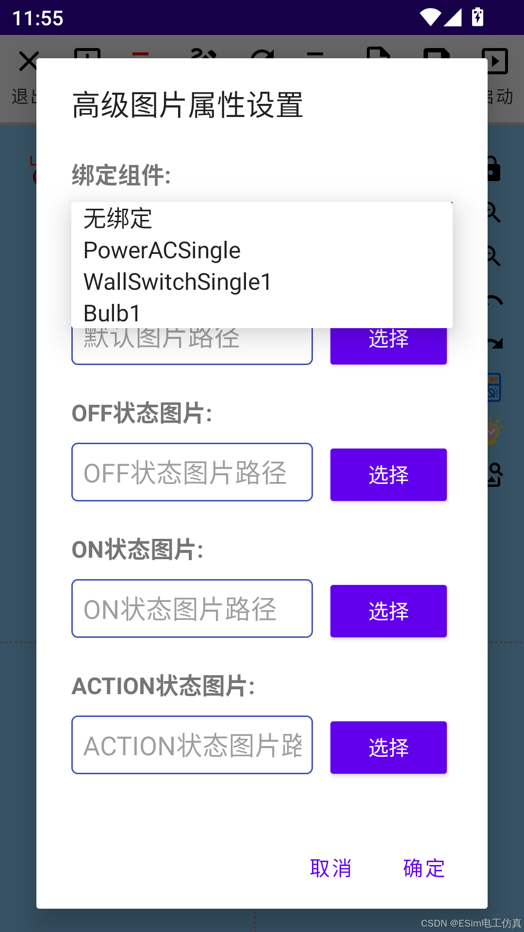 在设置页面可以绑定我们选择的控件,然后在选择在不同状态下需要显示的图片,不需要显示图片就留空,这样图片会随着绑定的控件状态而加载我们设置好的图片