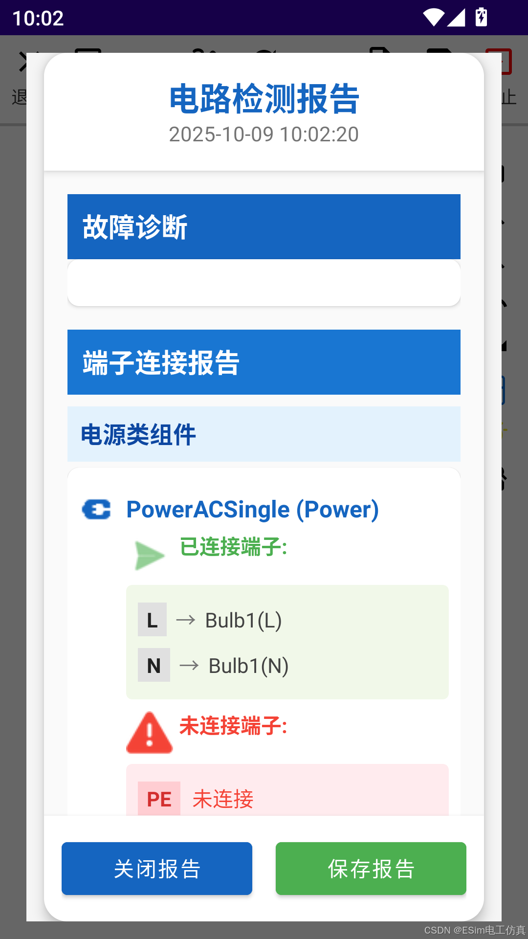 ESim电工仿真的电路检查功能会列举出已连接和未连接的端子,供大家来判断接线的正确性!同时会判断出重大的电路故障并提示,如短路、缺相等等
