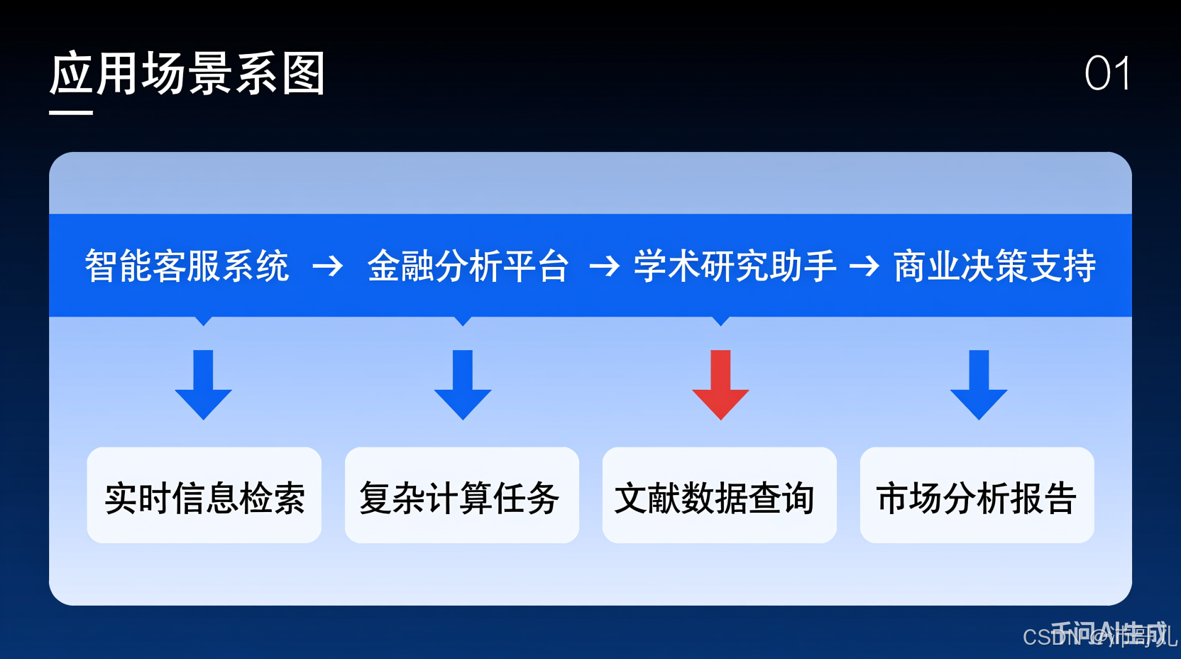 智能客服系统 → 金融分析平台 → 学术研究助手 → 商业决策支持