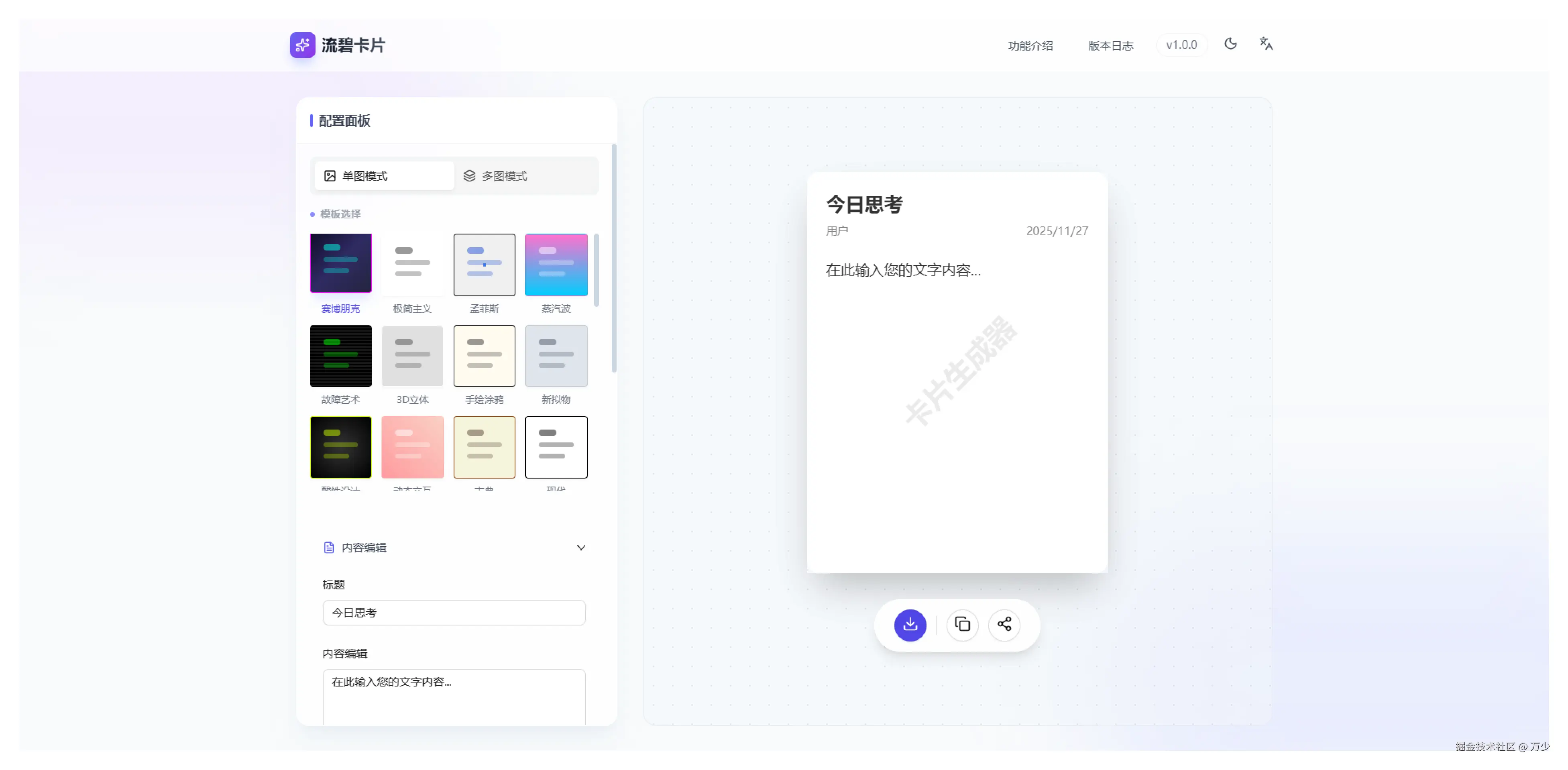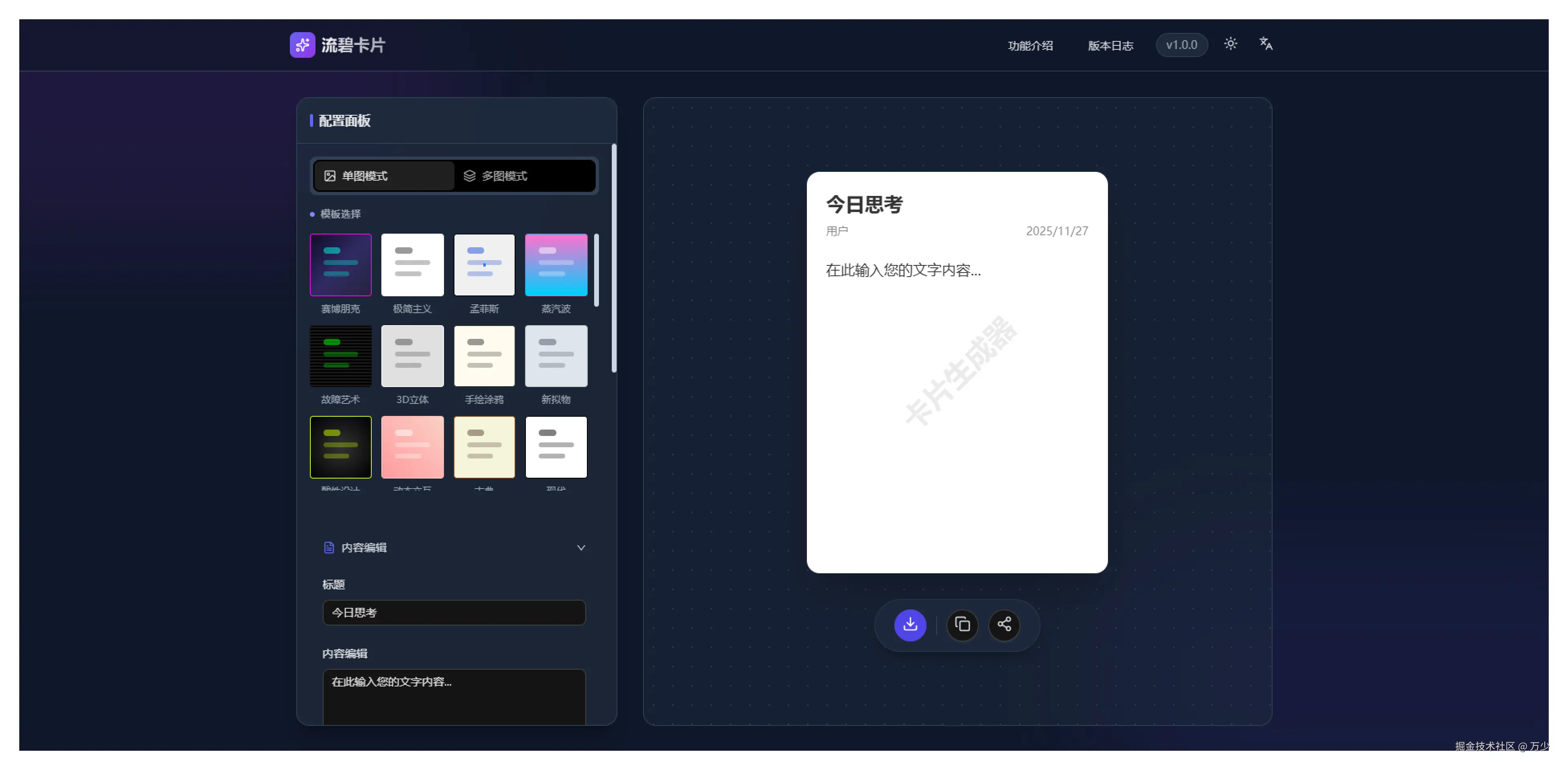 - 集成HTML转图片功能,支持将生成的卡片转换为图片格式