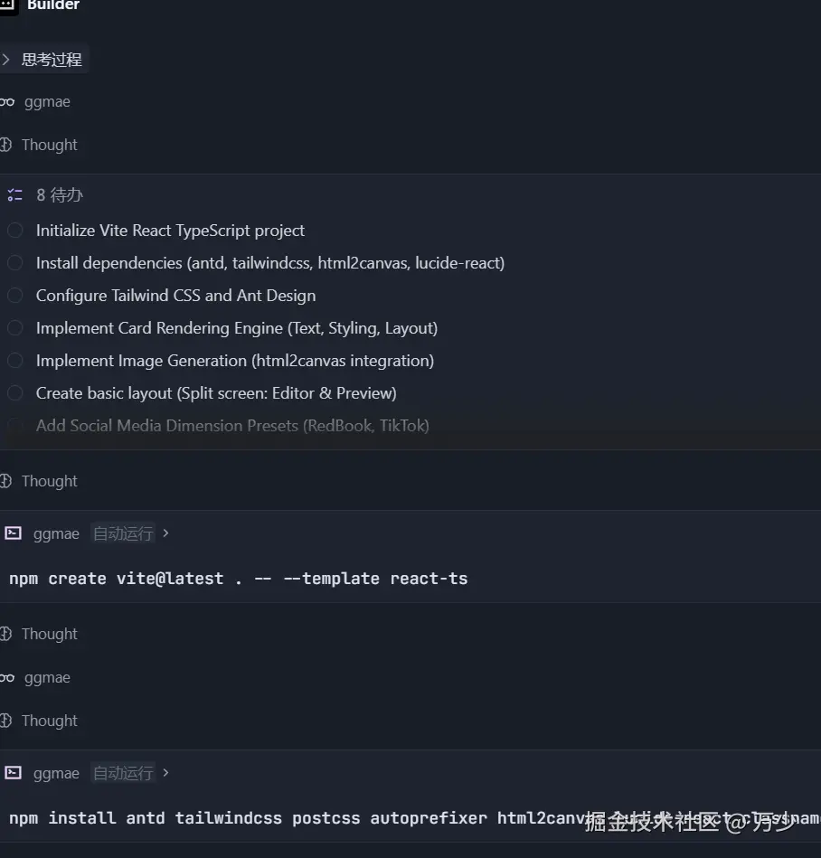 开始执行计划,Trae比较智能,给出了具体的计划和执行步骤,就开始帮我创建项目了。
