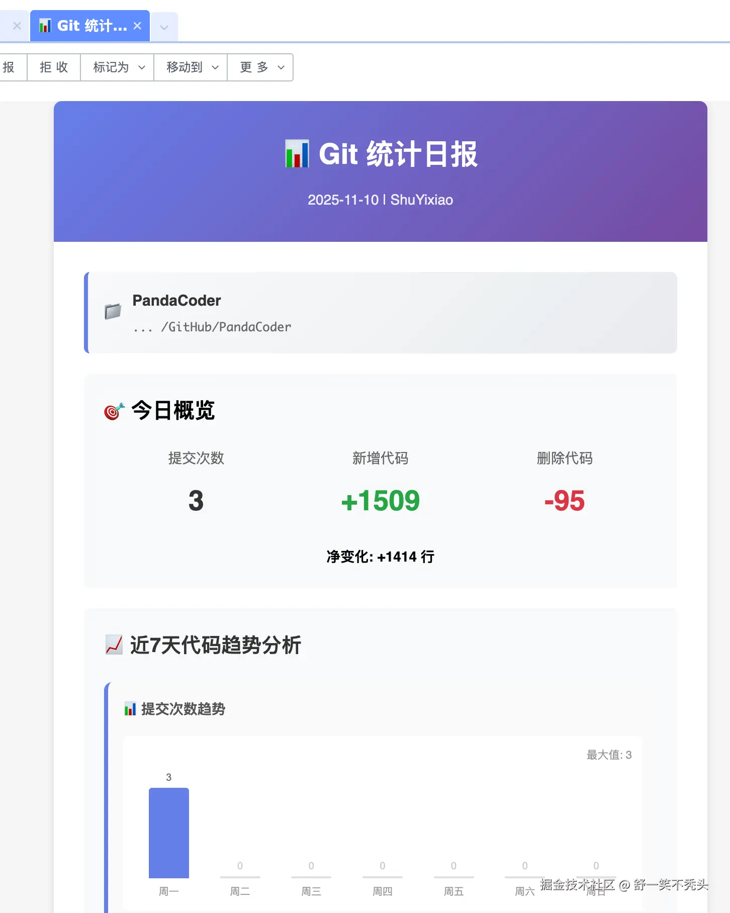 - 按时间维度:每日、每周、每月的开发节奏清晰可见