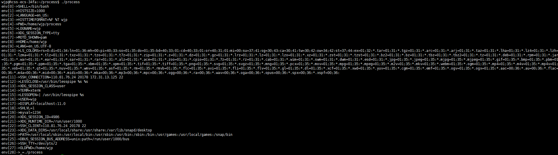 - 环境变量会被继承下来,父进程的环境变量会继承给子进程。