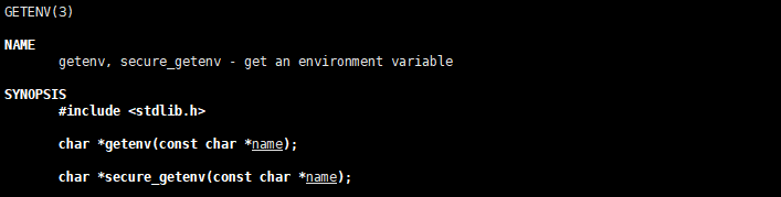 前面两个都是获取了整个的环境变量表,如果我们需要在代码中获取单一的环境变量可以使用getenv()函数