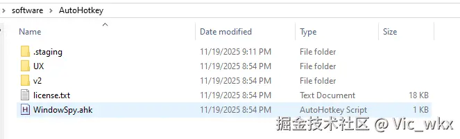 其中,WindowSpy.ahk 是 AutoHotkey 这个软件自带的一个脚本,双击运行:
