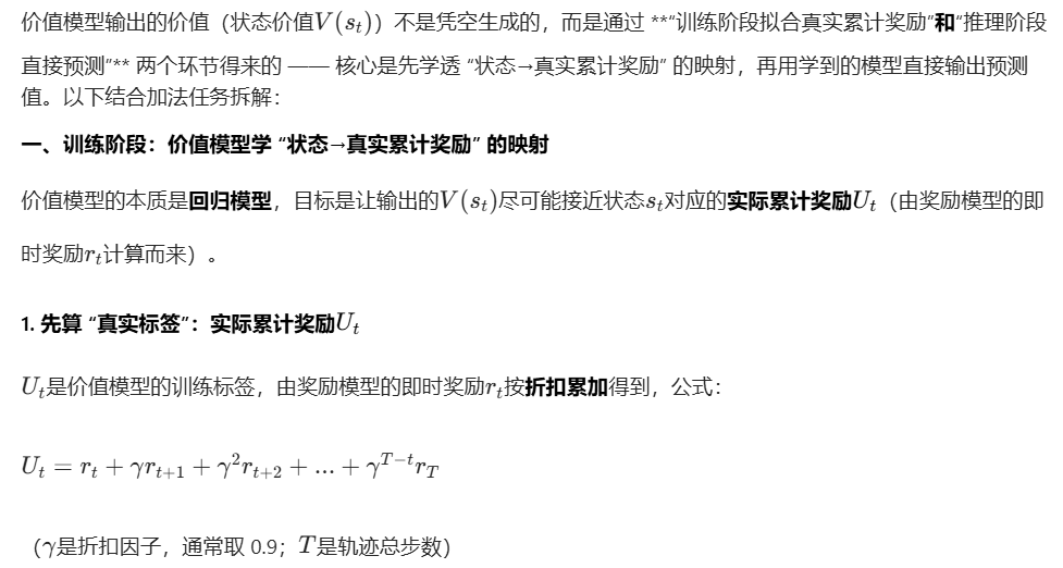 V(t)和参数Theta是需要训练更新的值。开始的 v (t) 确实是随机初始化的 Critic 网络给出的随机预测值,但这只是训练的起点 ------ 随着 Critic 不断用真实轨迹的回报修正自己,v (t) 会从 "随机猜测" 逐渐收敛到能准确反映状态价值的 "有效预测"。