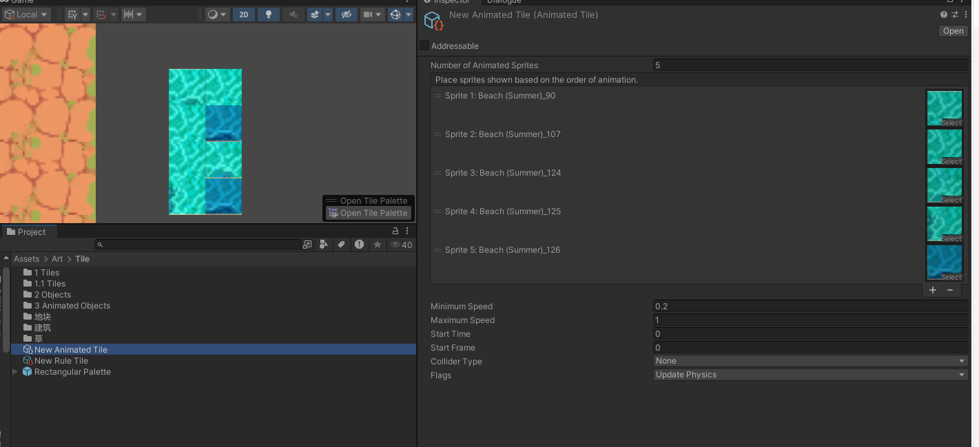 这是地块的动画,把多个地块图片拖进去就是一个动画了,然后拖进 palette中用即可