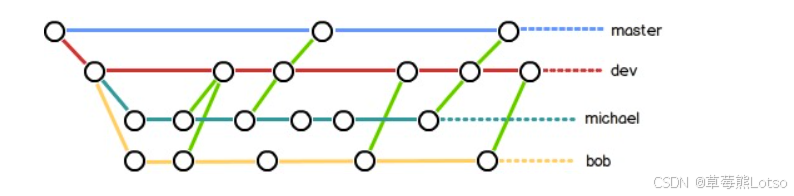 分支就像是科幻电影里面的平行宇宙,当你正在电脑前努力学习 C++ 的时候,另⼀个你正在另⼀个平行宇宙里努力学习 JAVA。如果两个平行宇宙互不干扰,那对现在的你也没啥影响。不过,在某个时间点,两个平行宇宙合并了,结果,你既学会了 C++ 又学会了 JAVA!