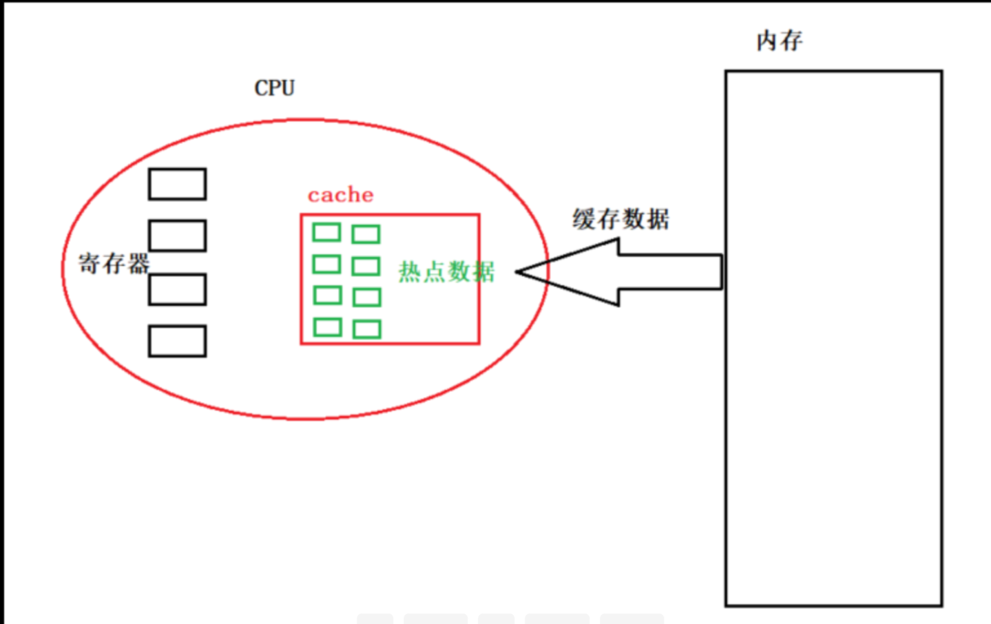 cache会根据局部性原理从内存中拿数据,尤其是使用频率高的热点数据会一直放在cache中。CPU在使用数据时,不是直接去内存中拿,而是先去cache中拿,如果不命中,也就是不存在,cache就会将CPU所需要的数据从内存中缓存到cache中。