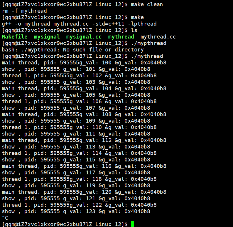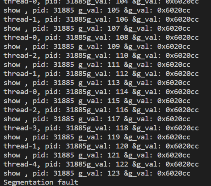 cout << "main thread, pid: " << getpid() << "g_val: " << g_val++ << " &g_val: " << &g_val << endl;