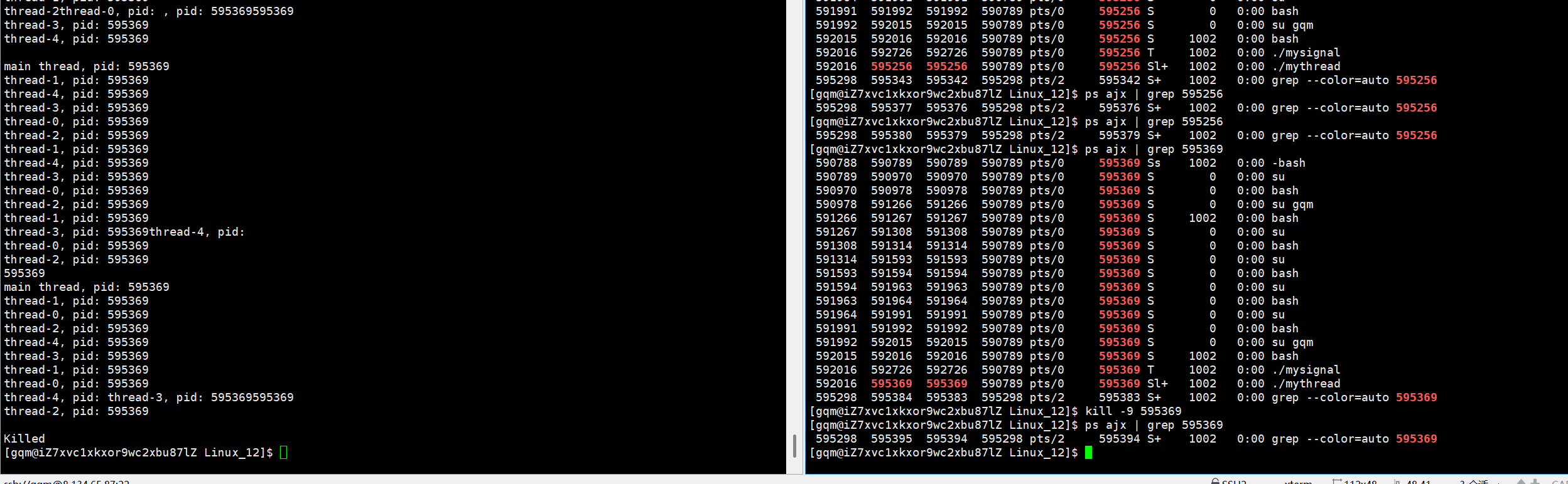给mythread进程发送9号信号,主线程和新线程都结束了。