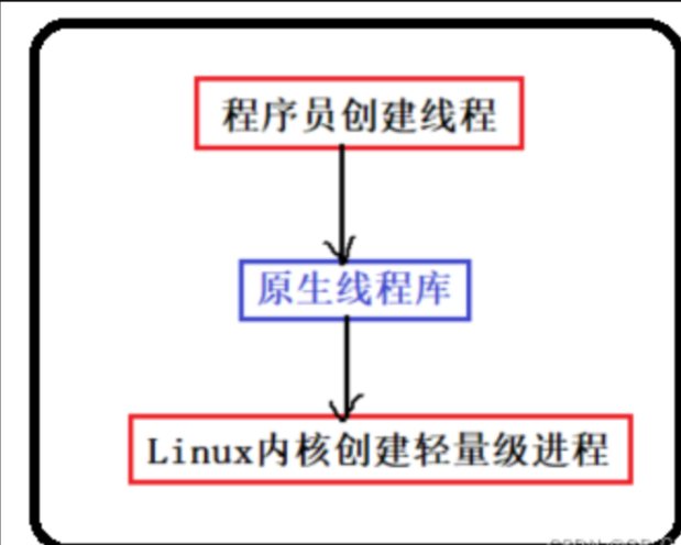 我们在创建进程 的时候,会调用一个线程库 ,库中再通过一些系统调用创建出轻量级进程 。这样一来,程序员创建线程,Linux中创建轻量级进程,双方的要求就都满足了。这个线程库是所有Linux操作系统必须自带的,所以也叫做原生线程库。