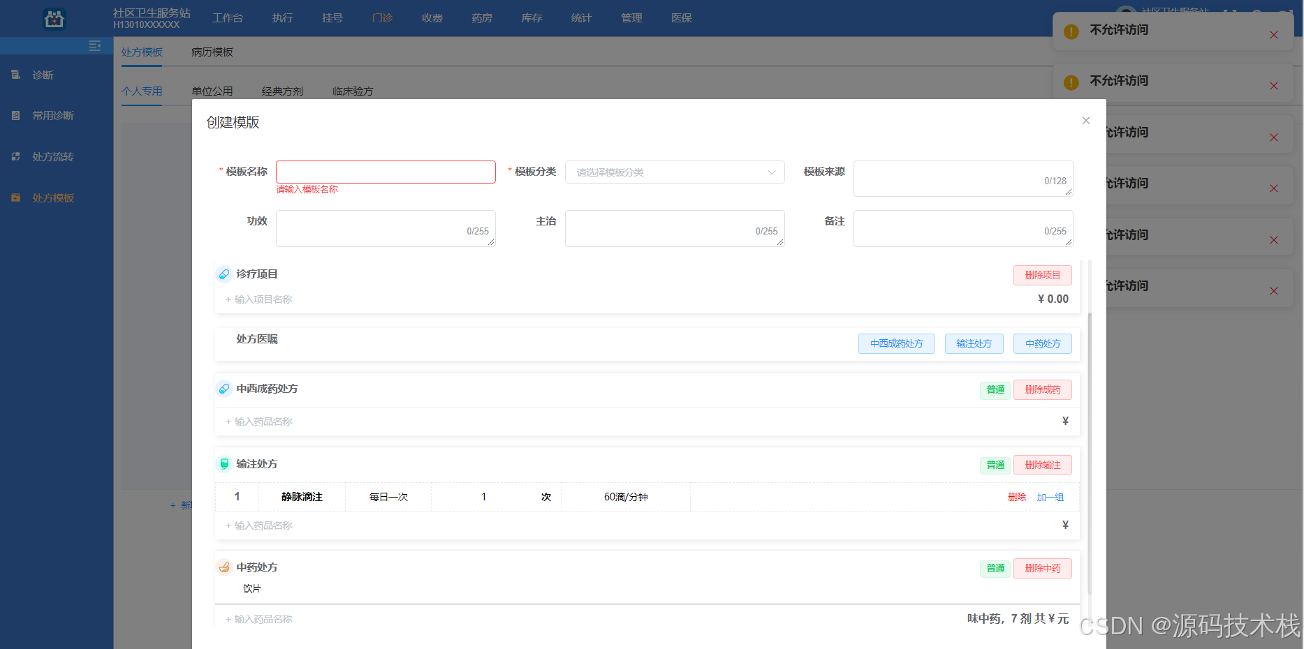 实现病历模板、处方模板的保存和调用;