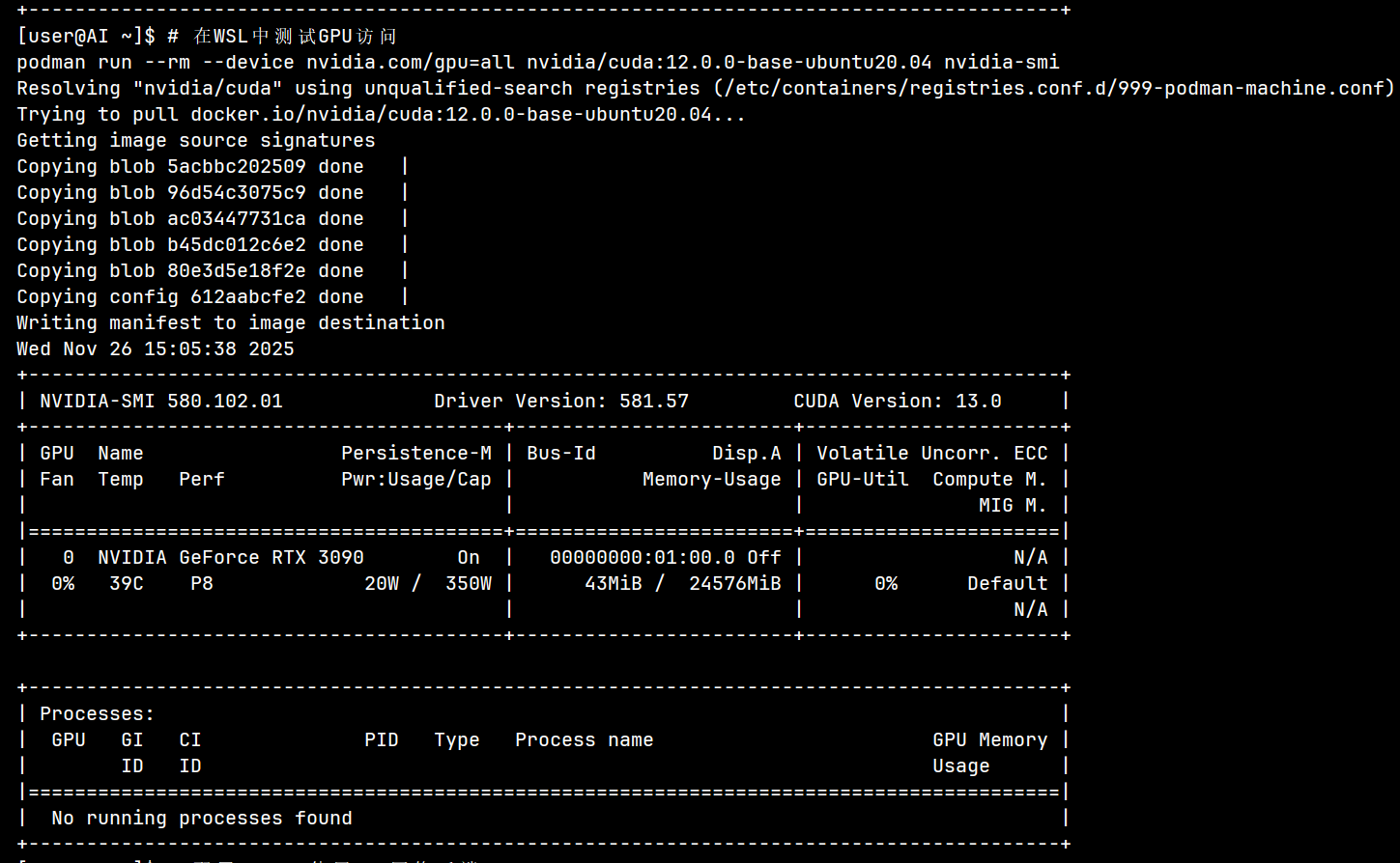 在WSL-podman-machine-default (Fedora Linux 42) 中安装 CUDA 13.0、cuDNN 9.14、Anaconda 2025.06、PyTorch 2.10