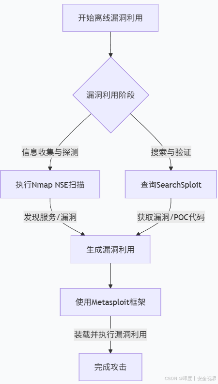 为了更直观地理解离线漏洞利用的整体流程,参考以下工作路径: