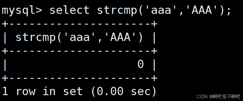 0:当两个字符串完全相同时(长度和每个字符都一致)。 -