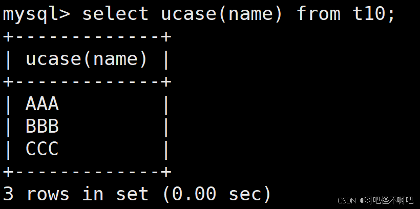 我们看下面这个图片,这样写就可以返回表中字符串的大写了。