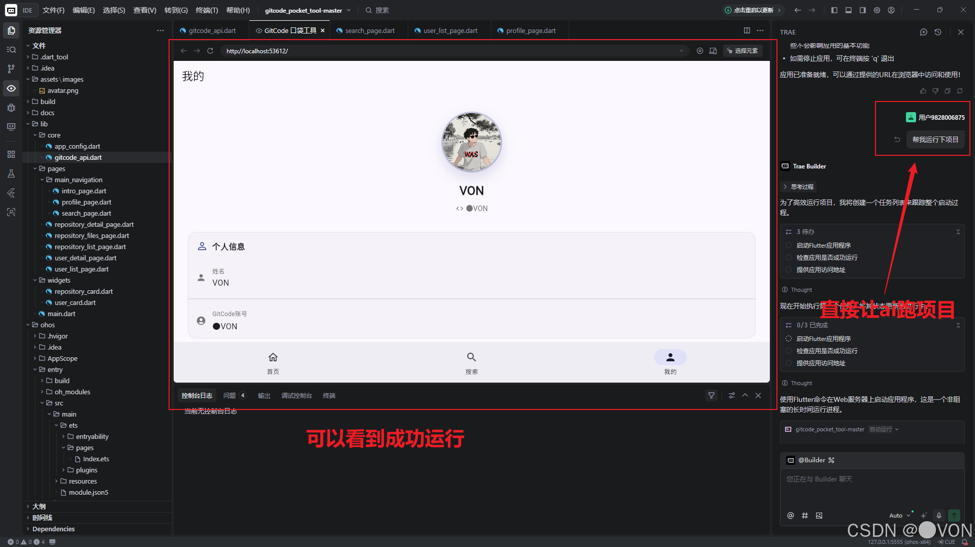 当执行 flutter pub get 并在 DevEco Studio 中点击 ▶ Run 时,系统会: