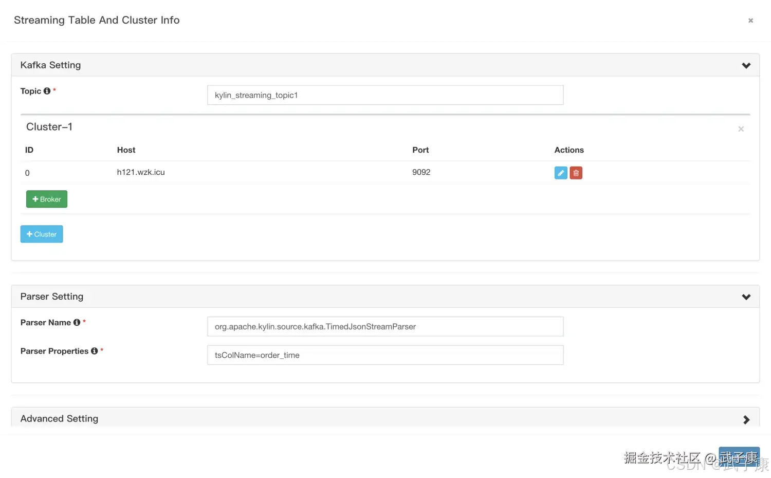 定义Kafka信息,填写对应的内容,如下图所示: