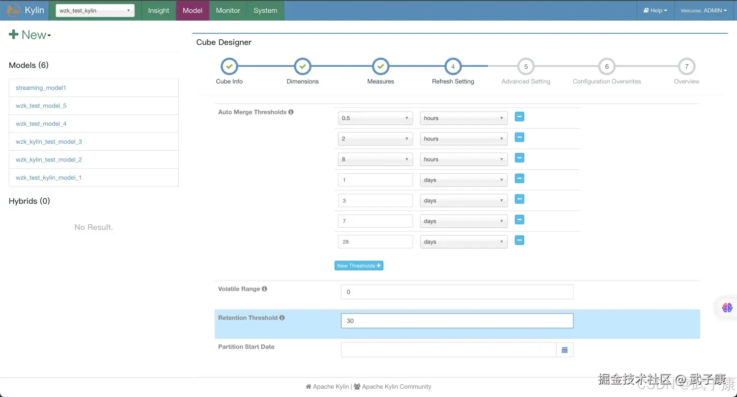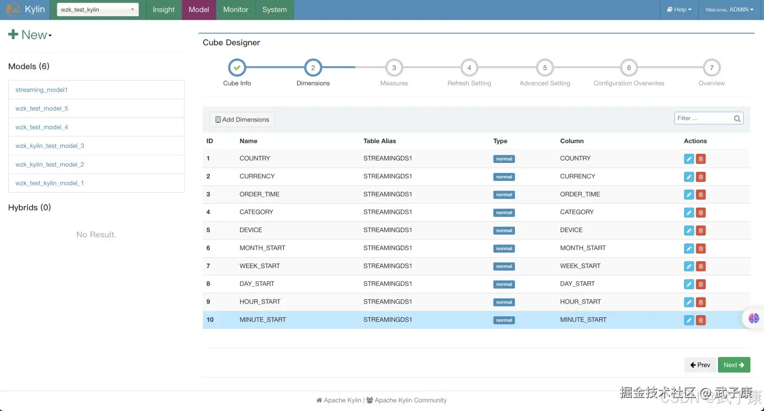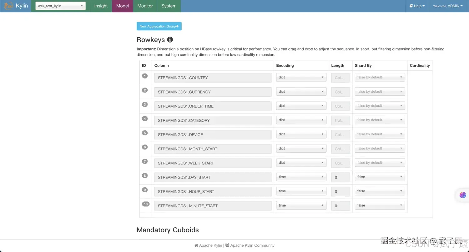 - 分区时间列应该Cube的一个Dimension,在SteamingOLAP中时间总是一个查询条件,Kylin利用它来缩小扫描分区的范围