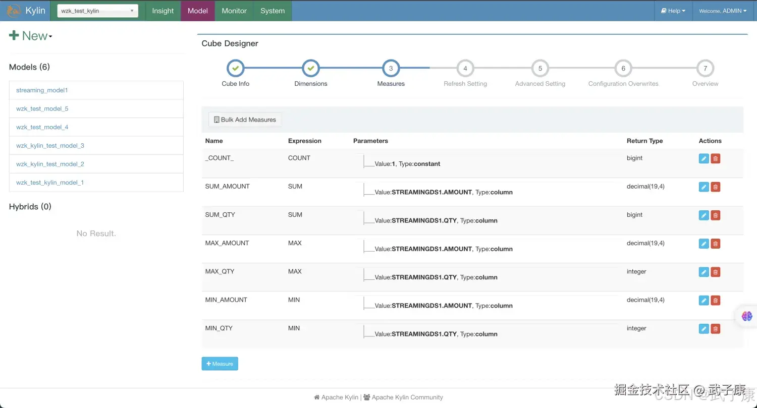 步骤:项目 => 定义数据源(Kafka)=> 定义Model => 定义Cube => Build Cube => 作业调度(频率高)
