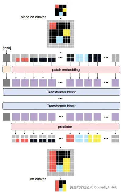 VARC的核心思想非常直观:将ARC重新定义为图像到图像的翻译问题。其技术框架包含以下几个关键创新: