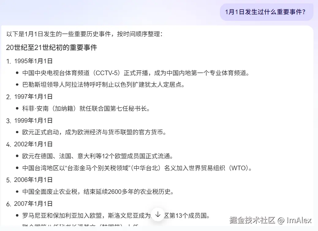 我最近在做"历史大事记"智能体时,踩了个实打实的坑:初期全靠大模型原生知识库支撑,回答总是"缺斤短两":要么漏了关键历史事件,要么对人物生卒、传统习俗的描述模糊不清,甚至连一些广为人知的纪念日都没法精准对应。