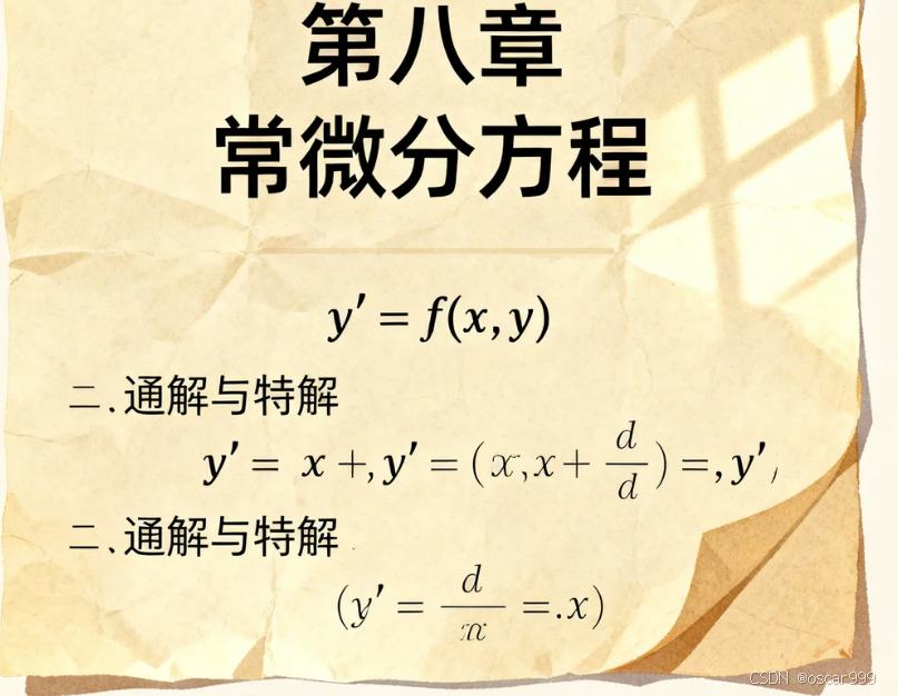 - y(4)−2y′′′+y′′=exy^{(4)} - 2y''' + y'' = e^xy(4)−2y′′′+y′′=ex(四阶)