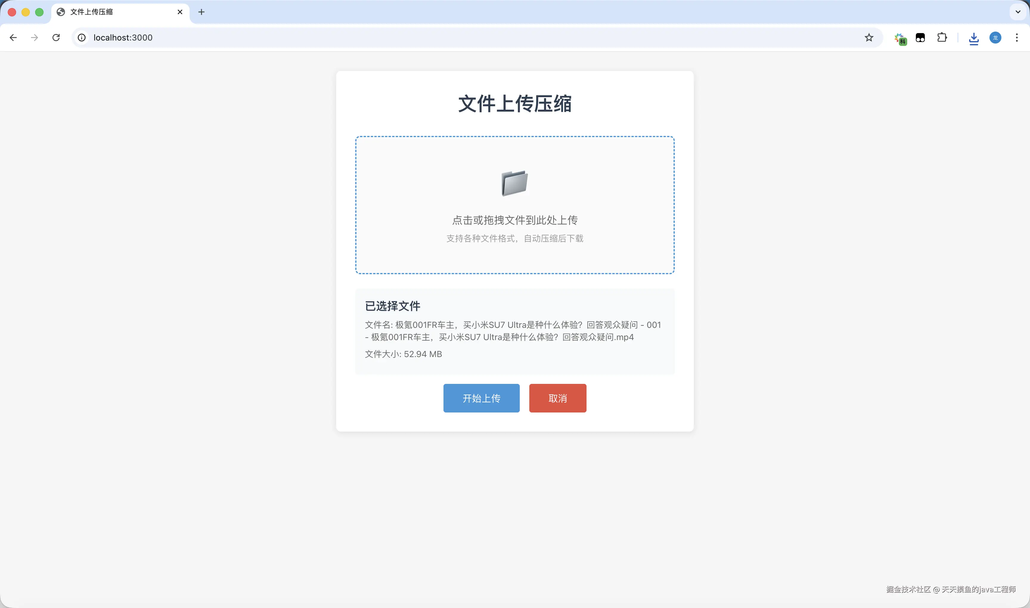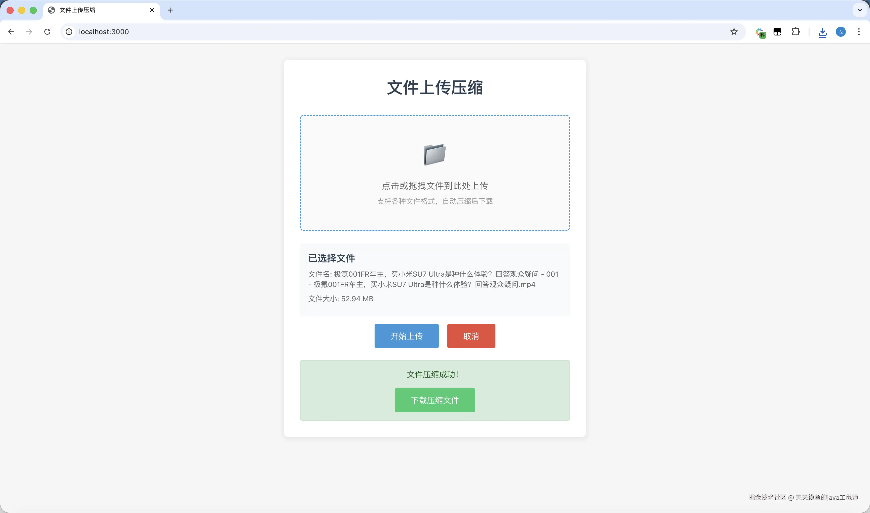 打开 http://localhost:3000,体验文件上传压缩功能!