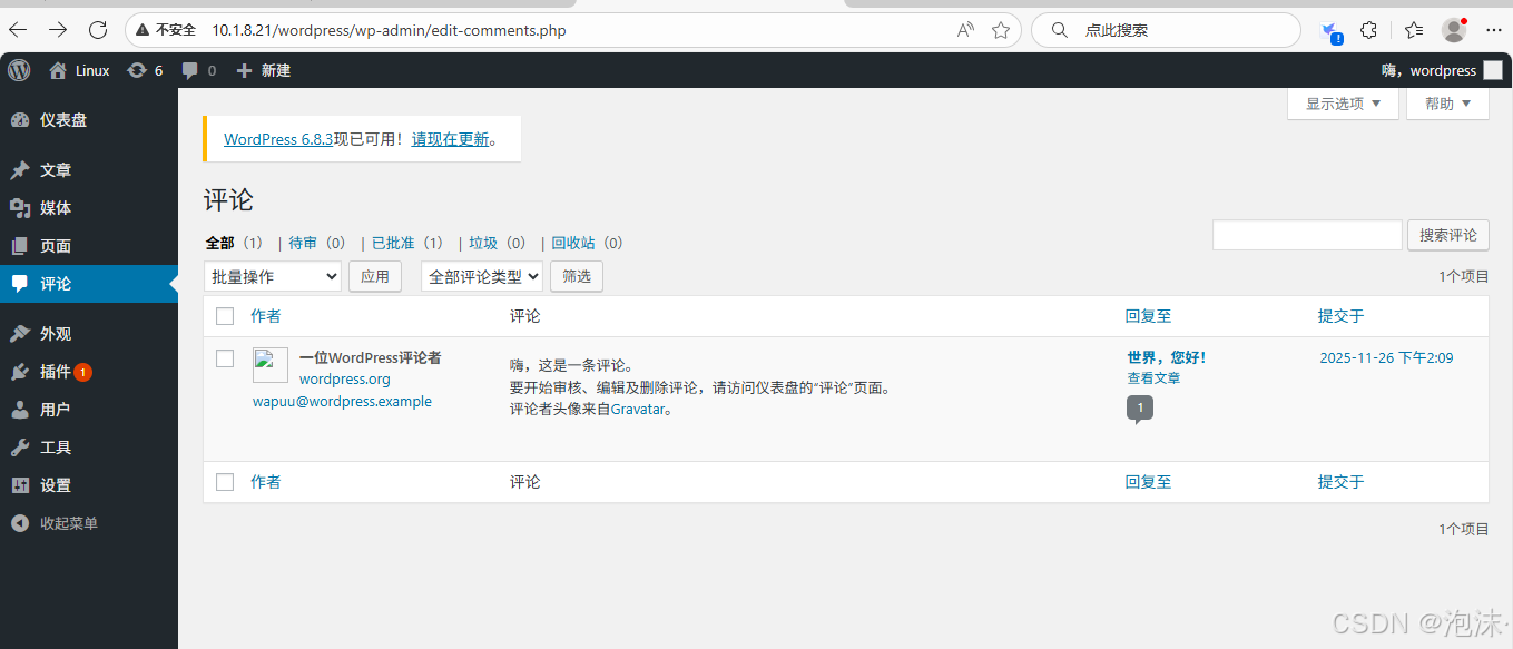 客户端配置 www.zhang.cloud 名称解析。访问http://10.1.8.21/wordpress/。