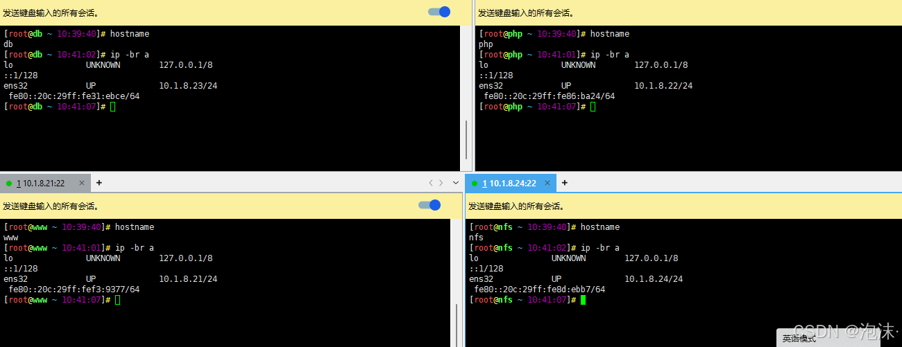 [root@nfs ~]# echo '/www 10.1.8.0/24(rw)' > /etc/exports