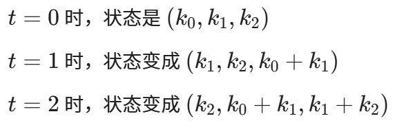由 3个寄存器组成,记为 s₀, s₁, s₂ , 初始密钥 Key:k ₀**, k** ₁**, k**₂,s₂=s₀+s₁