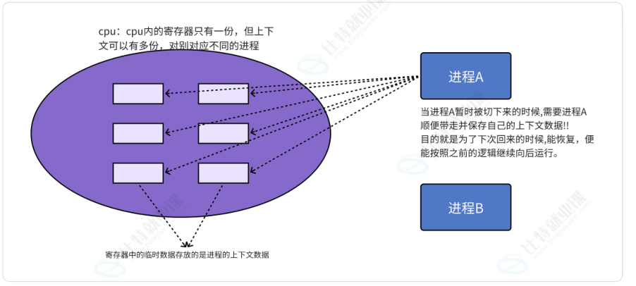 为了解决这个问题,于是定义了一个时间片,系统会给每一个进程设置一个合适的时间片,当这个进程的时间⽚到达,进程就被操作系统从CPU中剥离下来,下次再运行